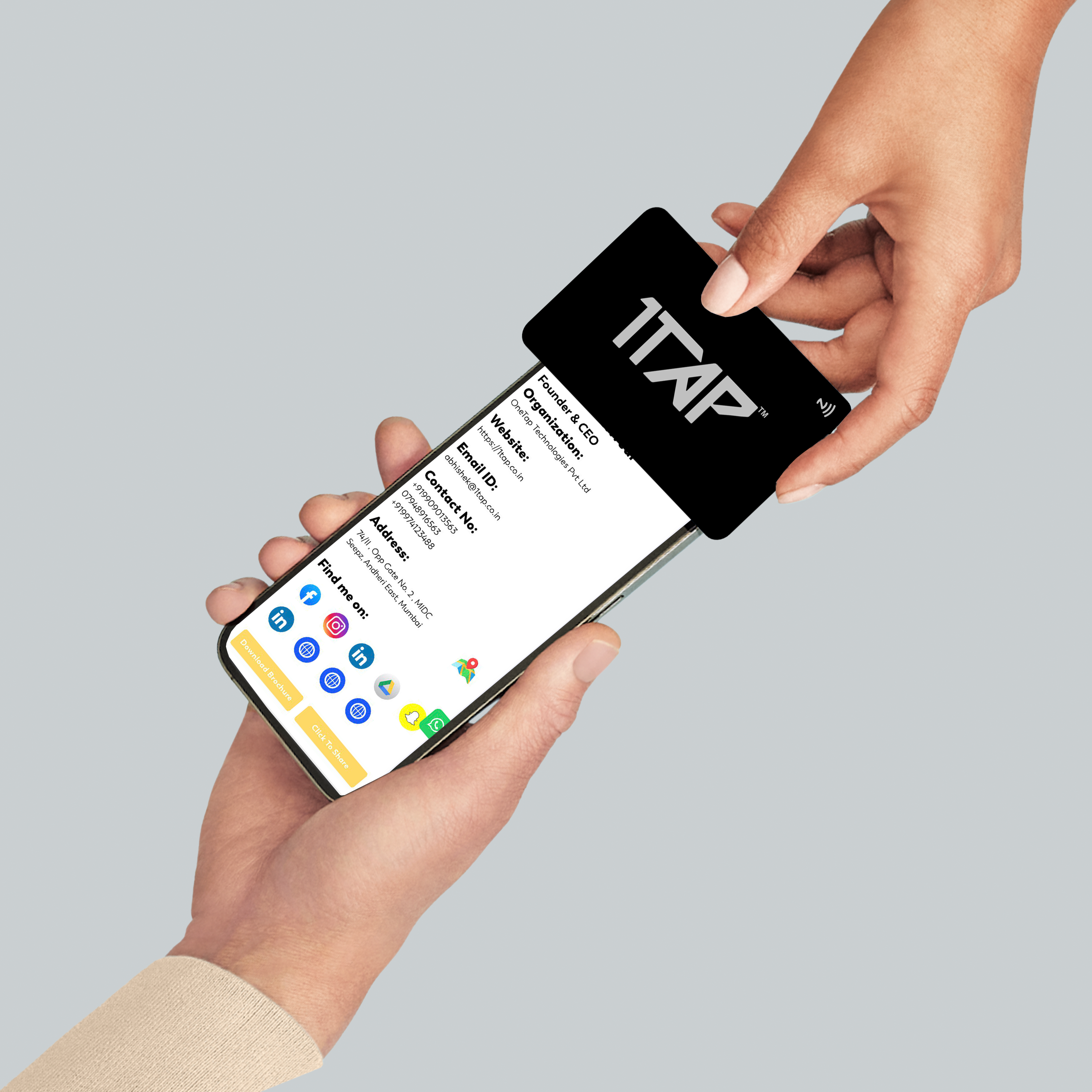 Sharing your digital business card through NFC with compatible devices is simple. Just tap the NFC tag on the device you want to share your card with after linking your NFC tag to your digital business card. After the link appears on the other device, touch it. Your digital business card has just been distributed using NFC. Your digital business card is now available for the recipient to see and save.