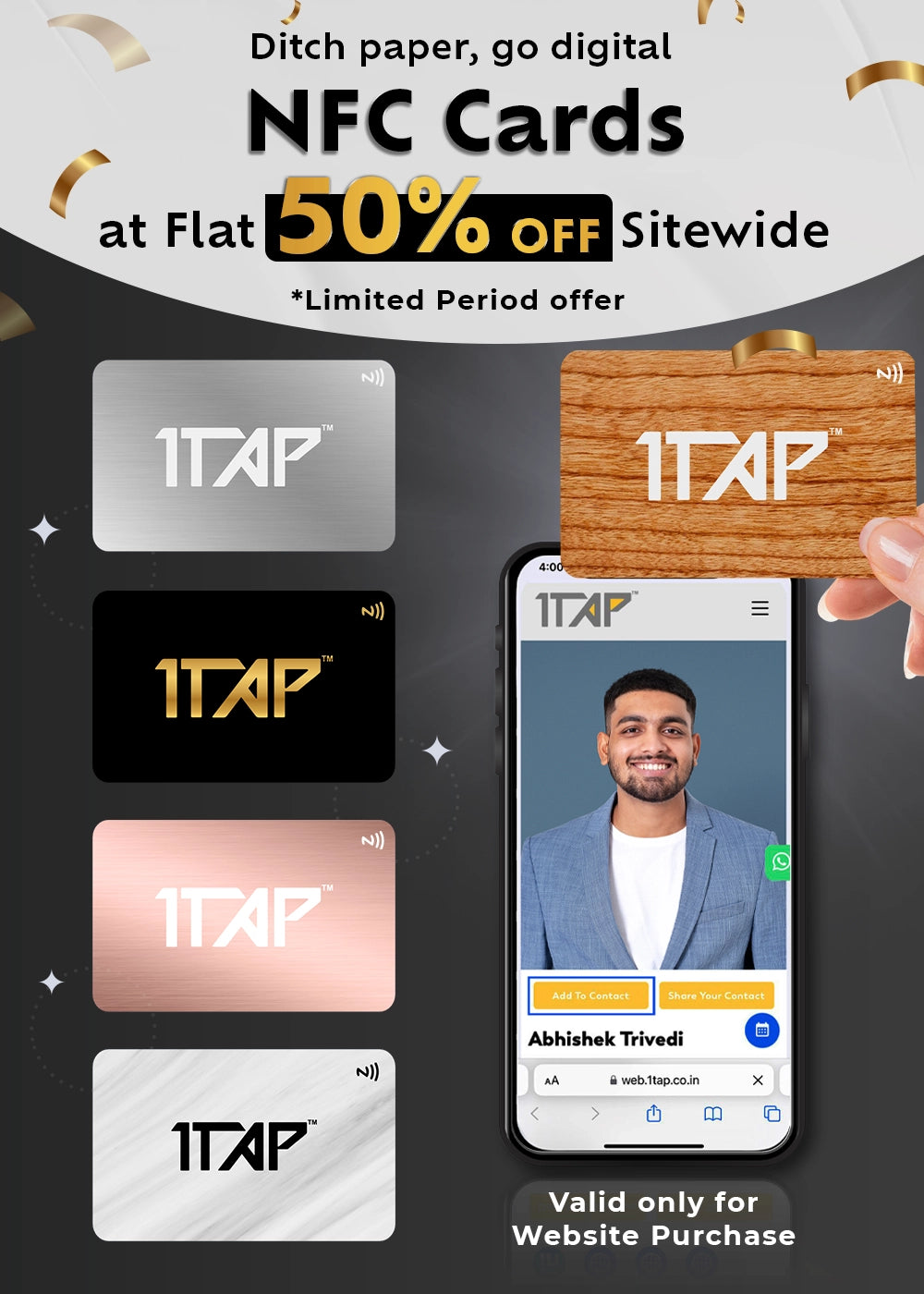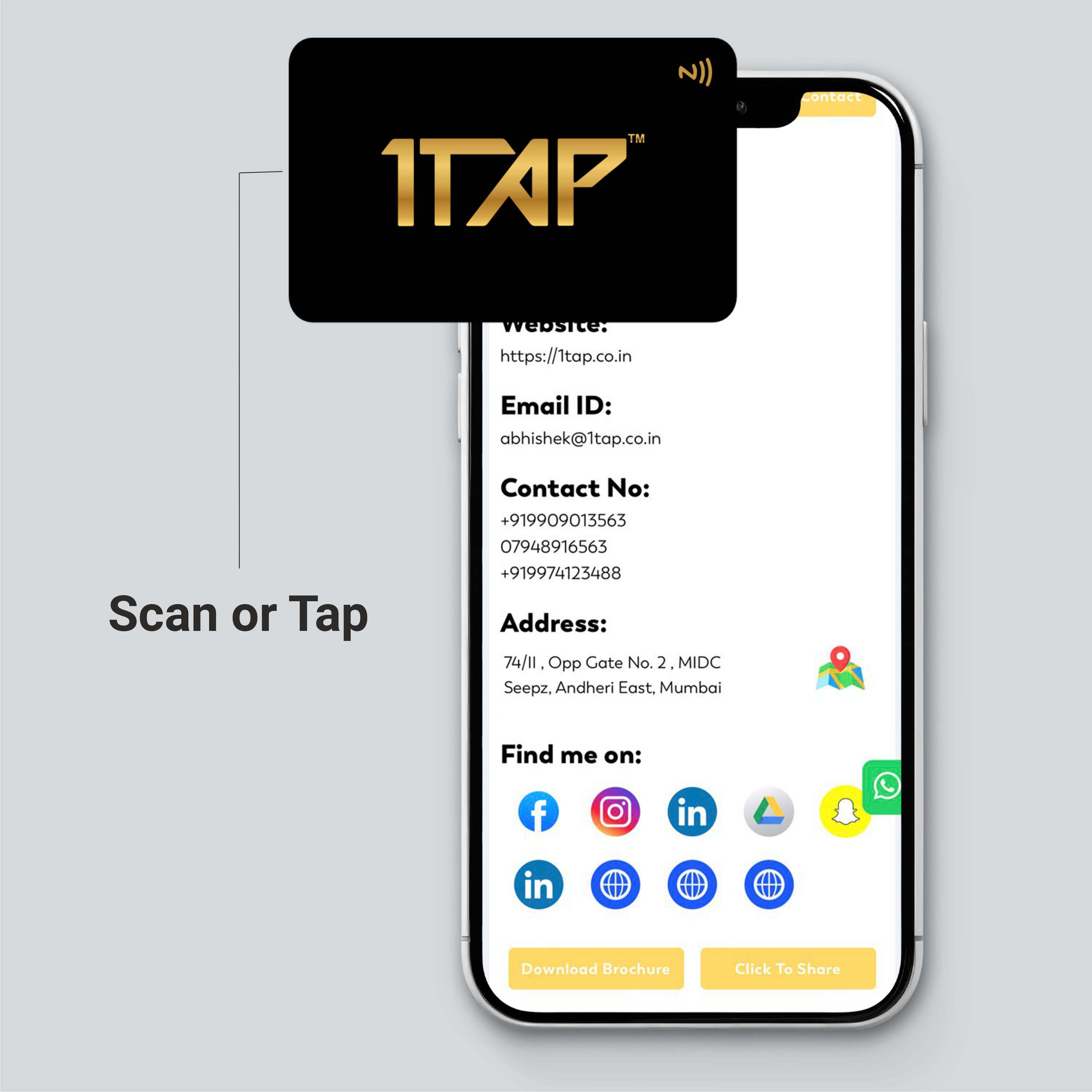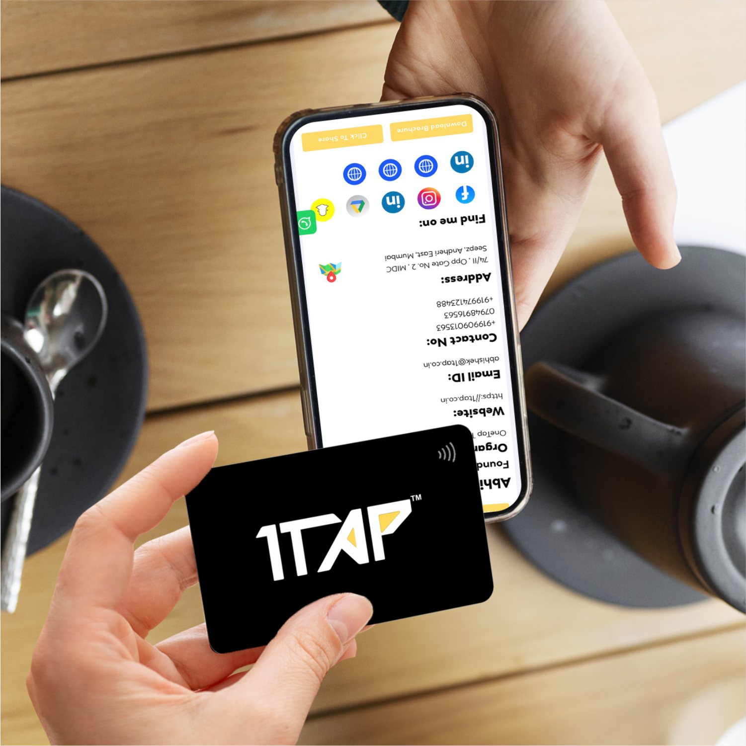 Say goodbye to reprints! With 1TAP, share contact details, social media, websites, and portfolios with a tap.
